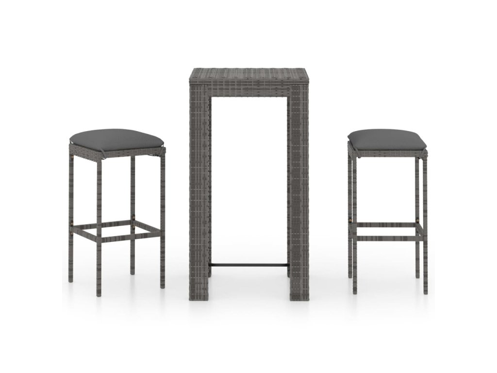 3dílný zahradní barový set s poduškami polyratan šedý 3064776