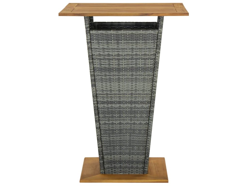 Barový stůl má ocelový rám s práškovým nástřikem pokrytý PE ratanem, který je odolný proti klimatickým vlivům, a zaručuje tak roky venkovního používání. Stolní deska a podstavec jsou vyrobené z masivního akáciového dřeva, takže jsou extra robustní a stabilní. Vestavěná opěrka nohou navíc zvyšuje pohodlí při sezení. Dřevěná stolní deska s laťkovým designem je ideální pro odkládání nápojů, jídla atd. Tento zahradní stůl z lehkého PE ratanu se také velmi snadno přemísťuje.