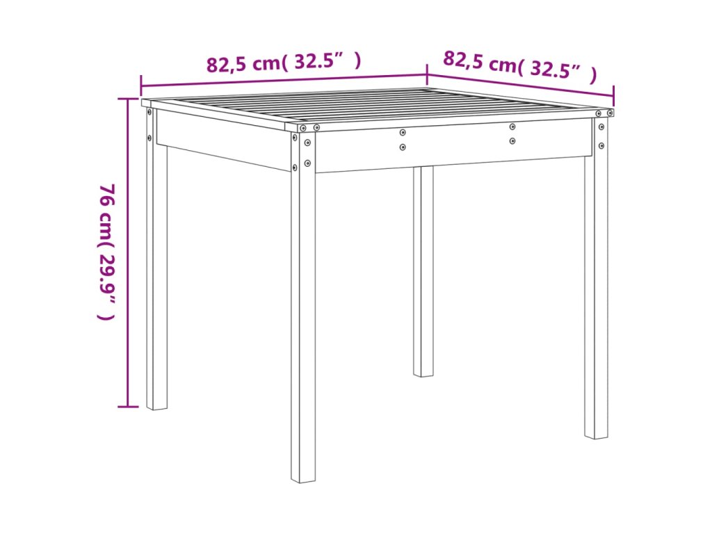 - Rozměry zahradního stolku: 82,5 x 82,5 x 76 cm (D x Š x V)