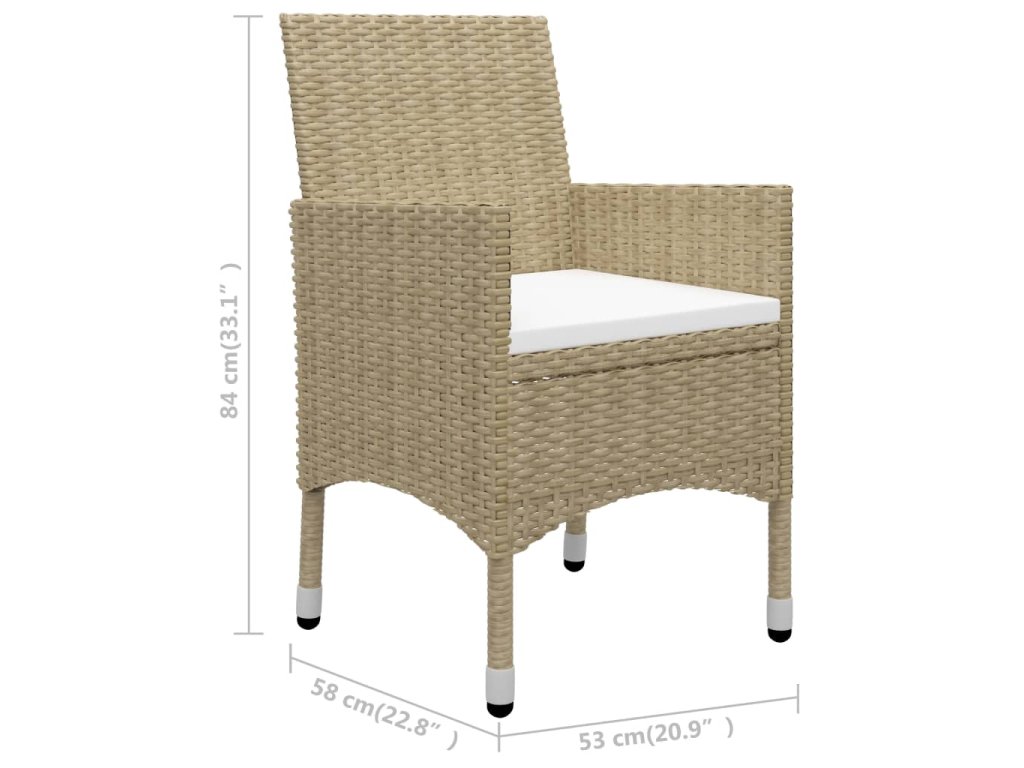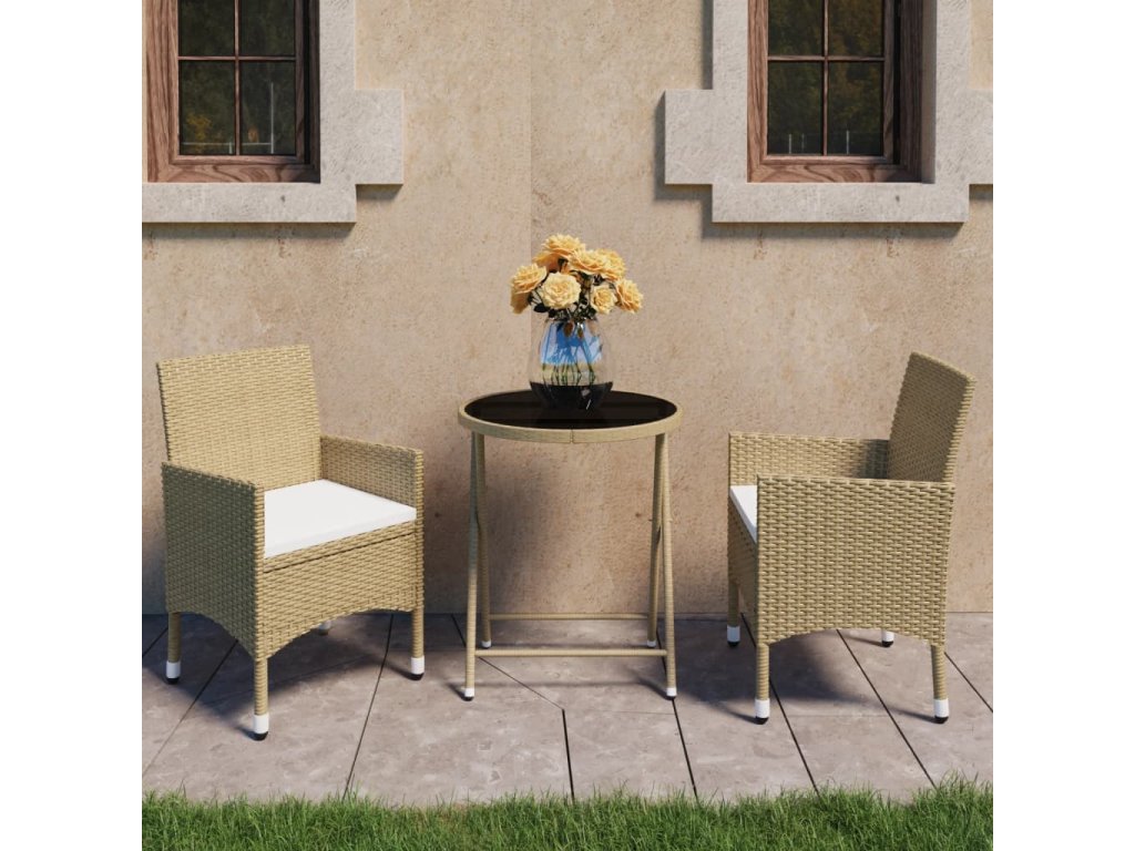 3dílný zahradní bistro set polyratan a tvrzené sklo béžový 3058380