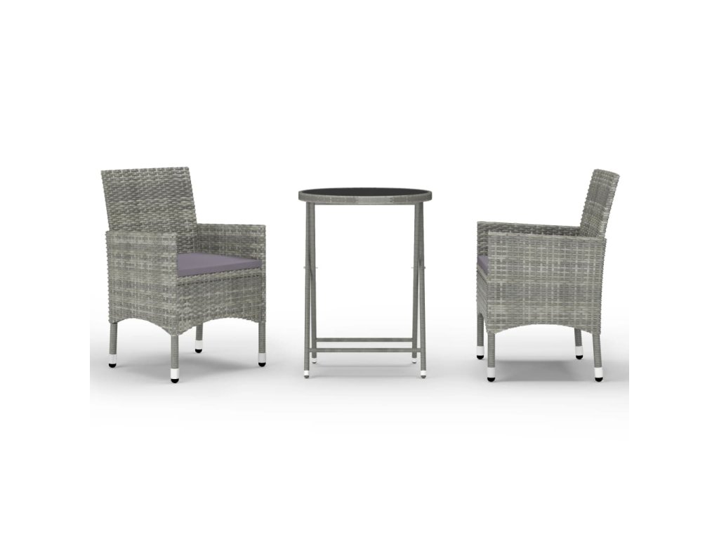 3dílný zahradní bistro set polyratan a tvrzené sklo šedý 3058379