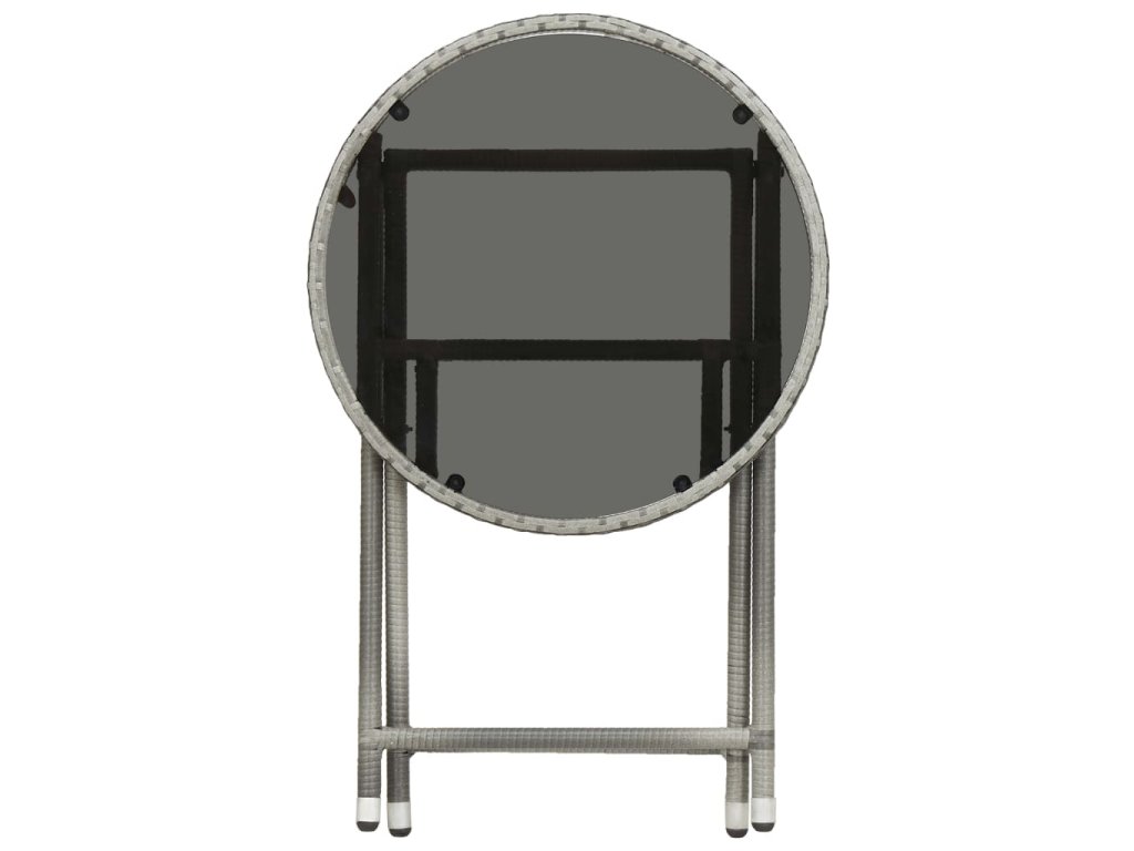 Stůl i židle mají práškově lakovaný ocelový rám je pokrytý klimaticky odolným PE ratanem s ochranou proti UV záření, mají dlouhou životnost a jsou stabilní. Při výrobě židlí se kladl důraz na jejich ergonomický tvar, aby se vám na nich co nejlépe sedělo. Navíc jsou opatřené poduškami pro lepší podporu. Stolní deska z posíleného tvrzeného skla na silném podstavci se snadno čistí a udržuje. Pokud zahradní stolek právě nepoužíváte, můžete ho jednoduše sklopit, a ušetřit tak místo.