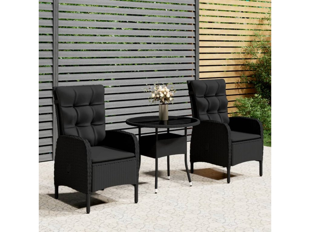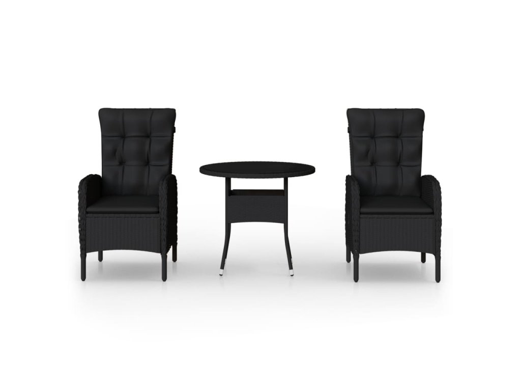 3dílný zahradní bistro set polyratan černý 3058548