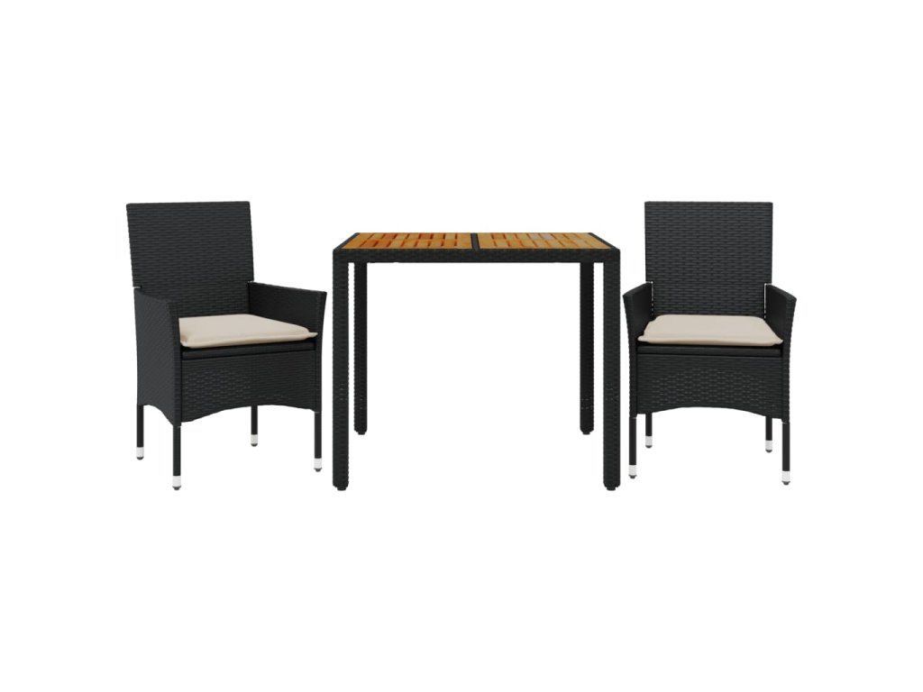 3dílný zahradní jídelní set a podušky černý polyratan a akácie 3278663