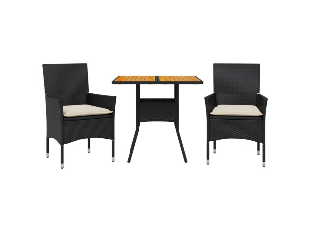 3dílný zahradní jídelní set a podušky černý polyratan a akácie 3278709