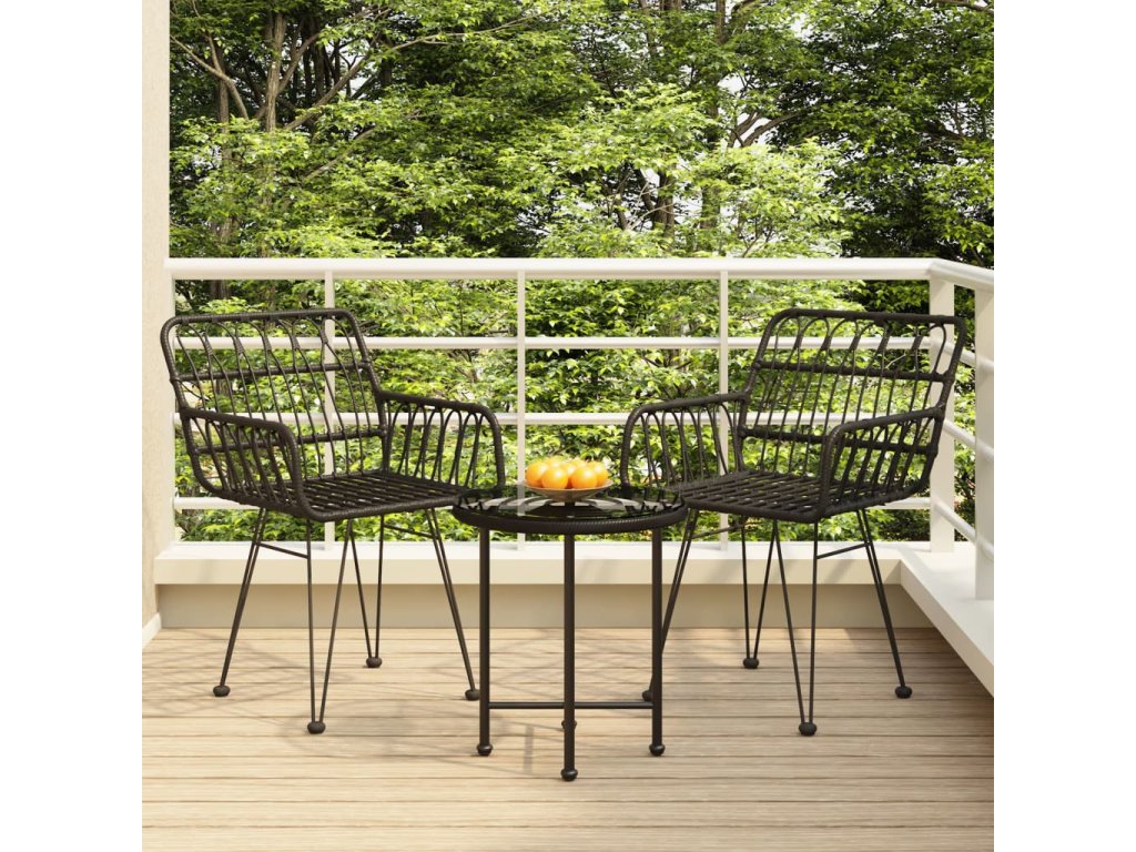3dílný zahradní jídelní set černý polyratan 3157830