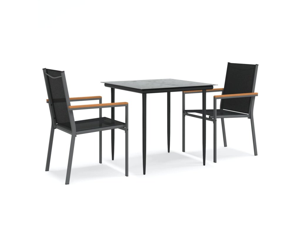 3dílný zahradní jídelní set černý textilen a ocel 3187033