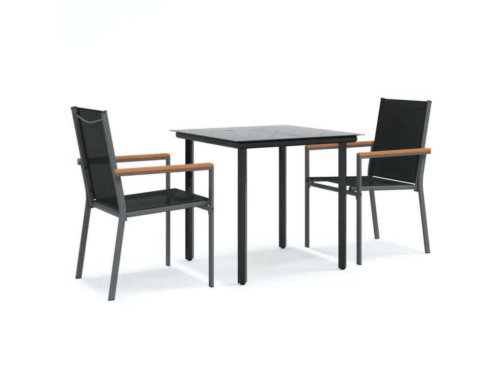 3dílný zahradní jídelní set černý textilen a ocel 3187041