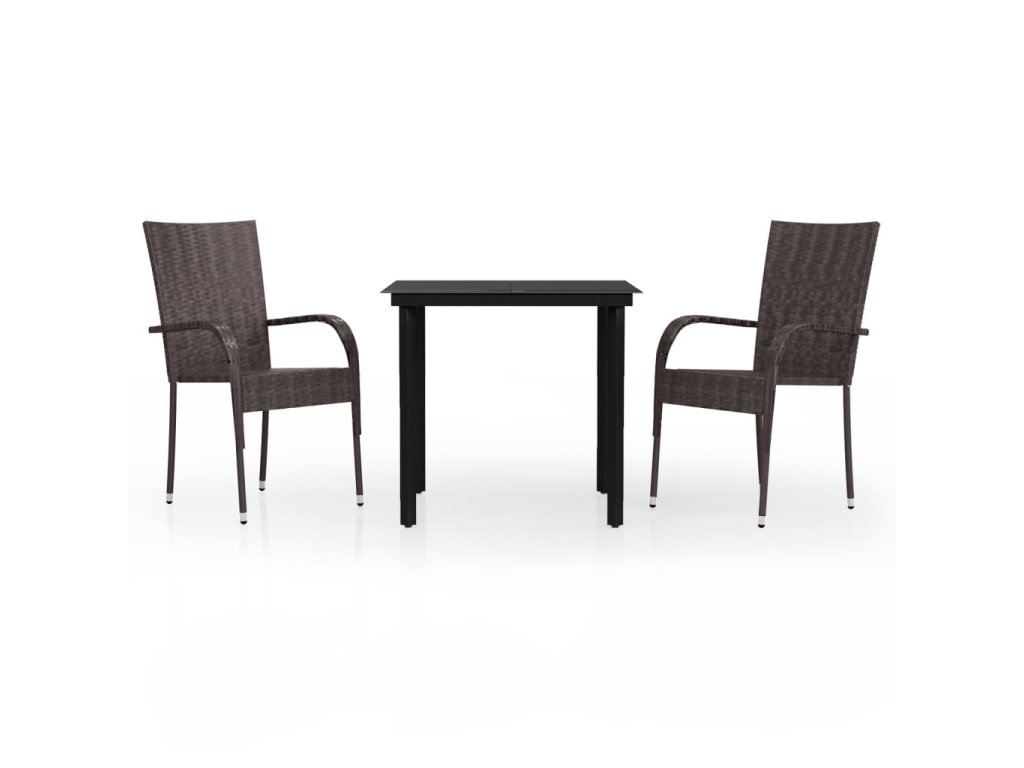 Stůl a židle mají rám z práškově lakované oceli, jsou tedy robustní, stabilní a skvěle se hodí pro každodenní venkovní použití. Židle jsou zhotoveny z voděodolného PE ratanu, takže se snadno čistí a jsou odolné. Hladkou skleněnou desku stolu jednoduše očistíte vlhkým hadříkem a výborně vám poslouží k servírování občerstvení a nápojů či k vystavení různých dekorativních předmětů.