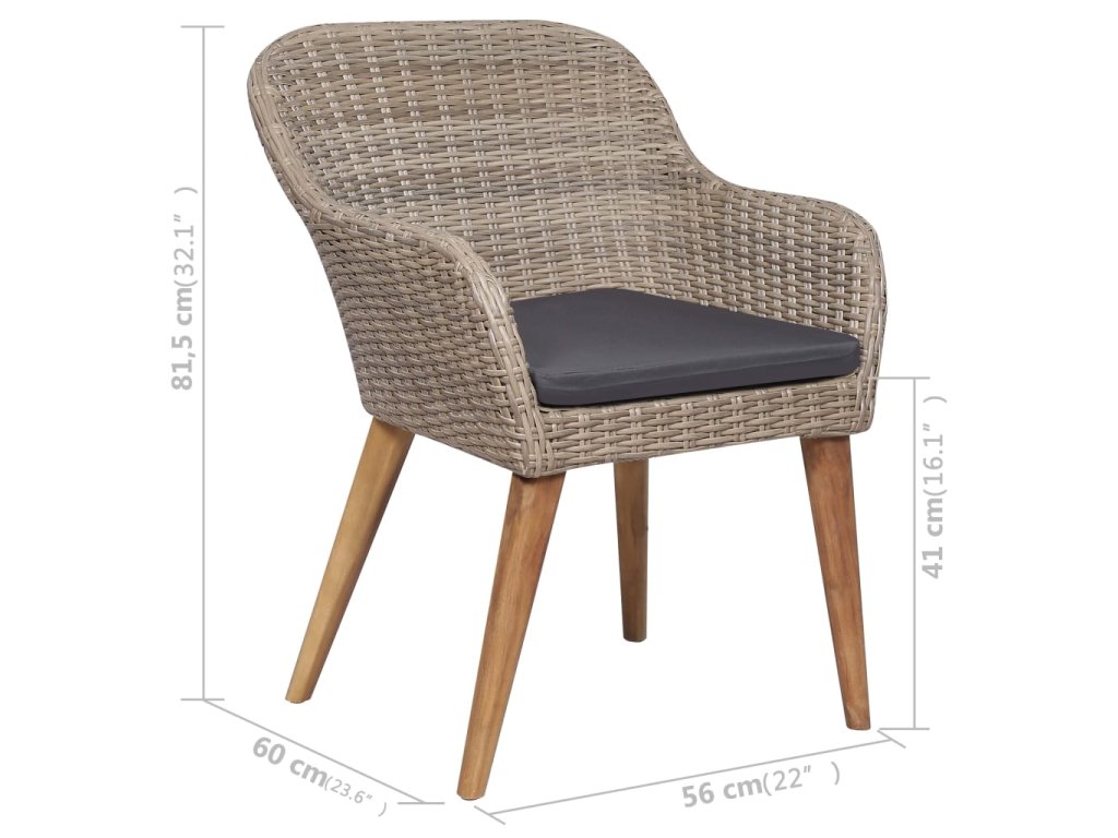 - Materiál: PE (polyetylenový) ratan, práškově lakovaná ocel, masivní akáciové dřevo s olejovaným povrchem