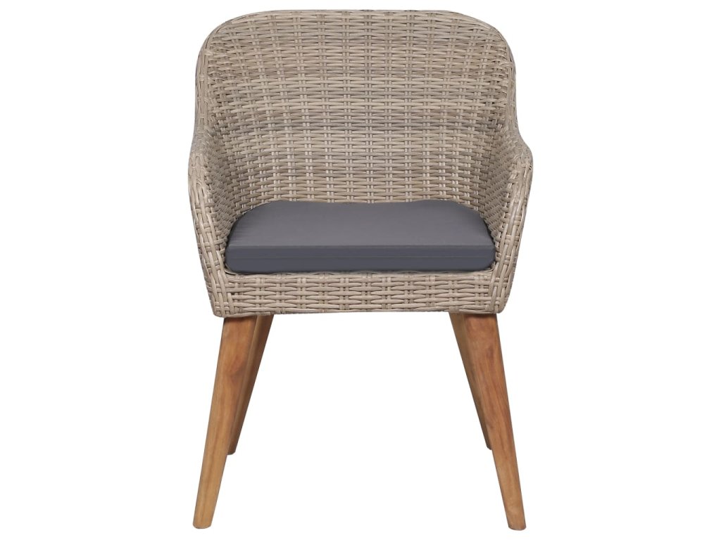 Jídelní stůl je zhotovený z masivního akáciového dřeva s olejovaným povrchem, takže je stabilní, odolný a nenáročný na údržbu. Jídelní židle mají rám z práškově lakované oceli, opletený PE ratanem, který výborně vzdoruje klimatickým vlivům. Dlouho vám proto vydrží a snadno je očistíte. Ergonomický tvar spolu s hustě polstrovanými poduškami vám při sezení zaručí maximální pohodlí. Polyesterové potahy podušek nevyžadují téměř žádnou údržbu a dají se jednoduše stáhnout a oprat.