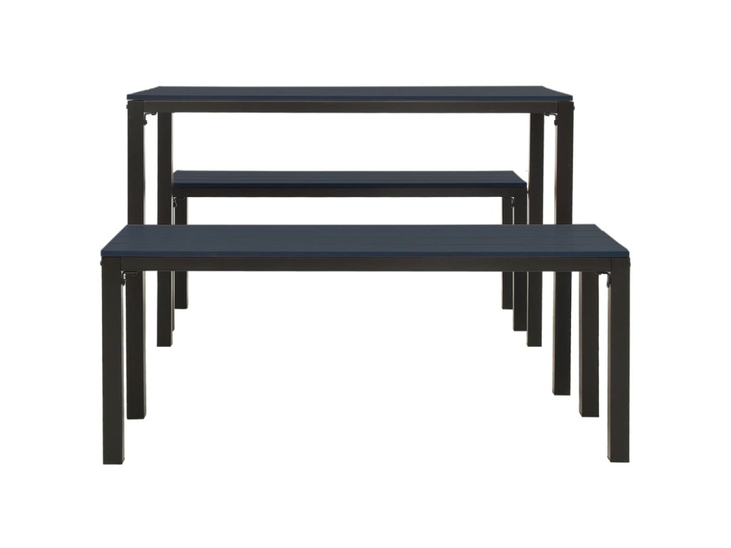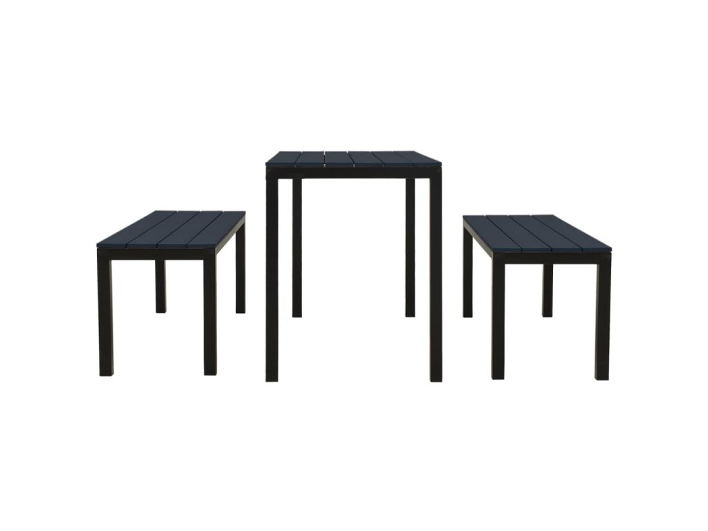 Jídelní set na terasu je vyroben z oceli a WPC (dřevoplastového kompozitu), kombinace dřeva a plastu, což je bezpečný a trvanlivý materiál pro venkovní použití. Lavičky vám poskytnou pohodlné sezení, zatímco robustní stolní deska je ideální pro servírování nápojů a jídla.