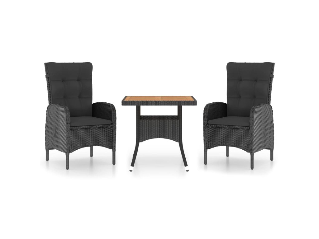 3dílný zahradní jídelní set polyratan a akáciové dřevo černý 3058527