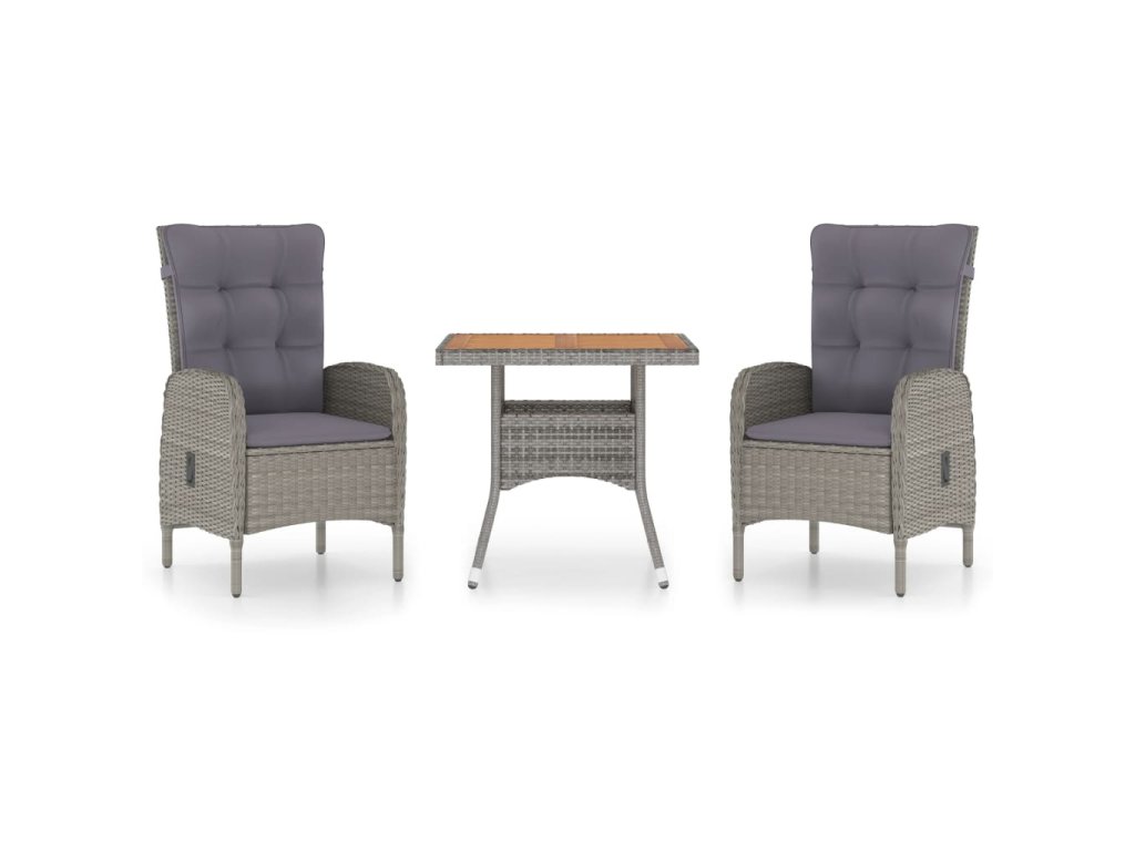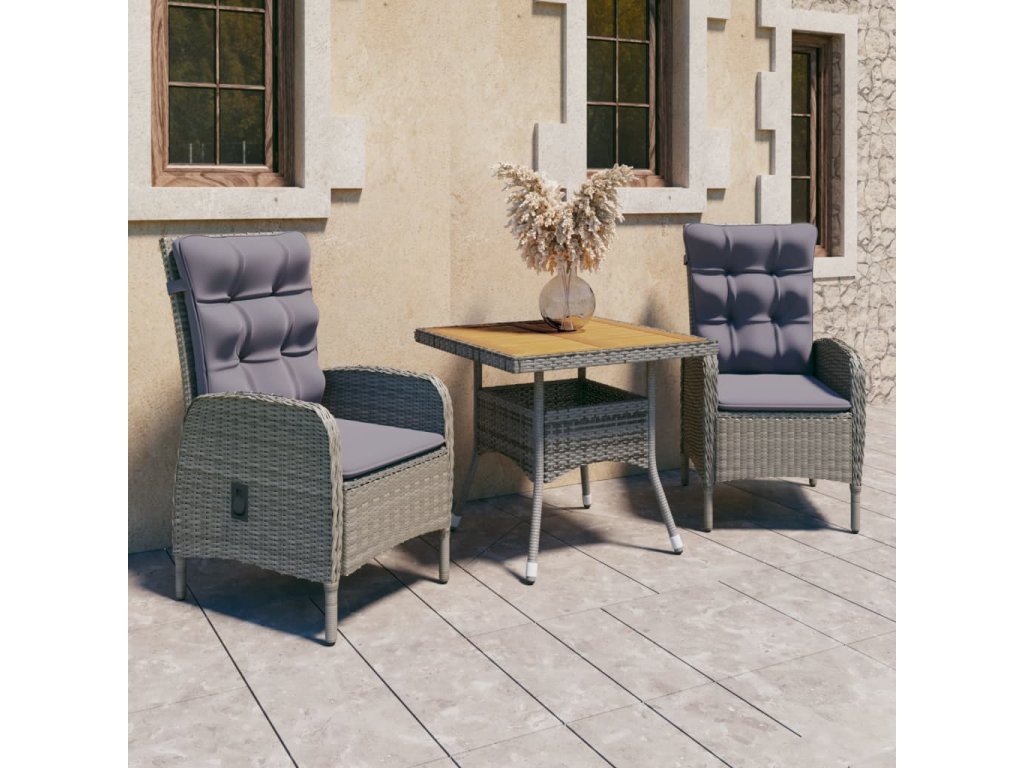 3dílný zahradní jídelní set polyratan a akáciové dřevo šedý 3058523