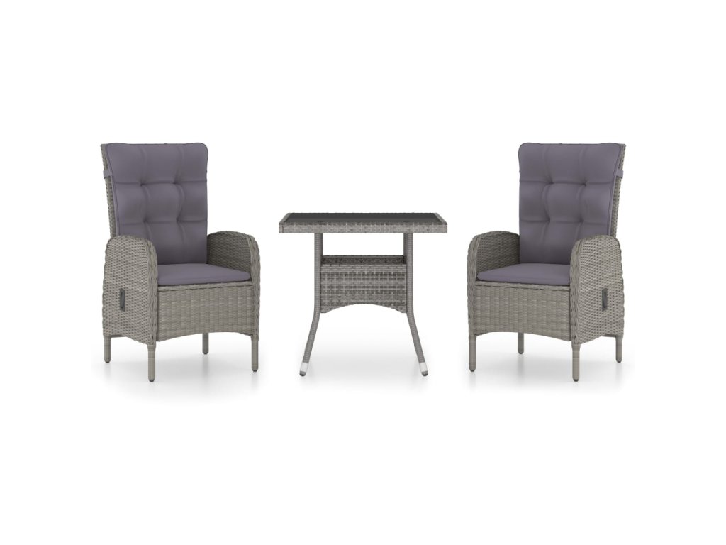 3dílný zahradní jídelní set polyratan a sklo šedý 3058522