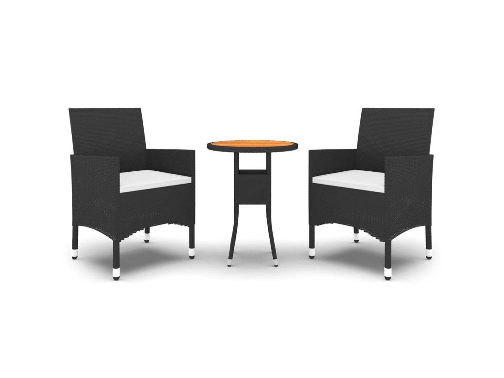 3dílný zahradní jídelní set polyratan černý 3058462