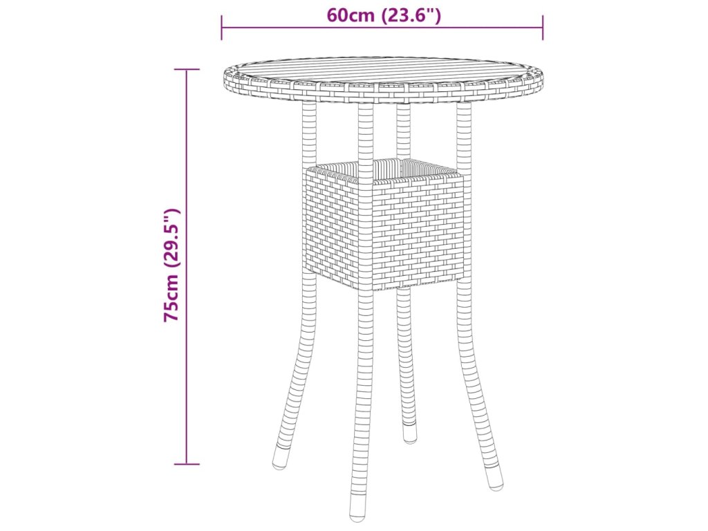 - Materiál: polyratan, práškově lakovaná ocel, masivní akáciové dřevo