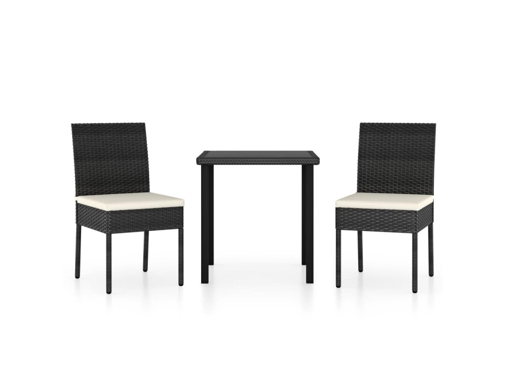 3dílný zahradní jídelní set polyratan černý 3065693