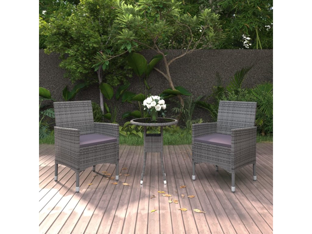 3dílný zahradní jídelní set polyratan šedý 3058459