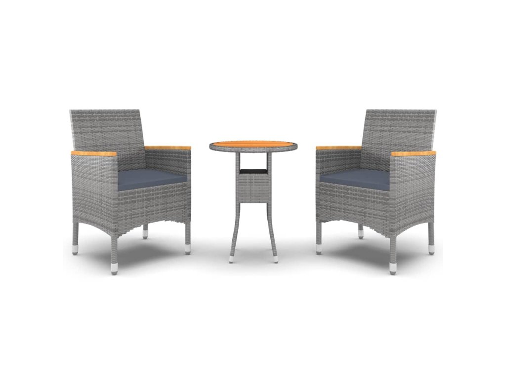 3dílný zahradní jídelní set polyratan šedý 3058467