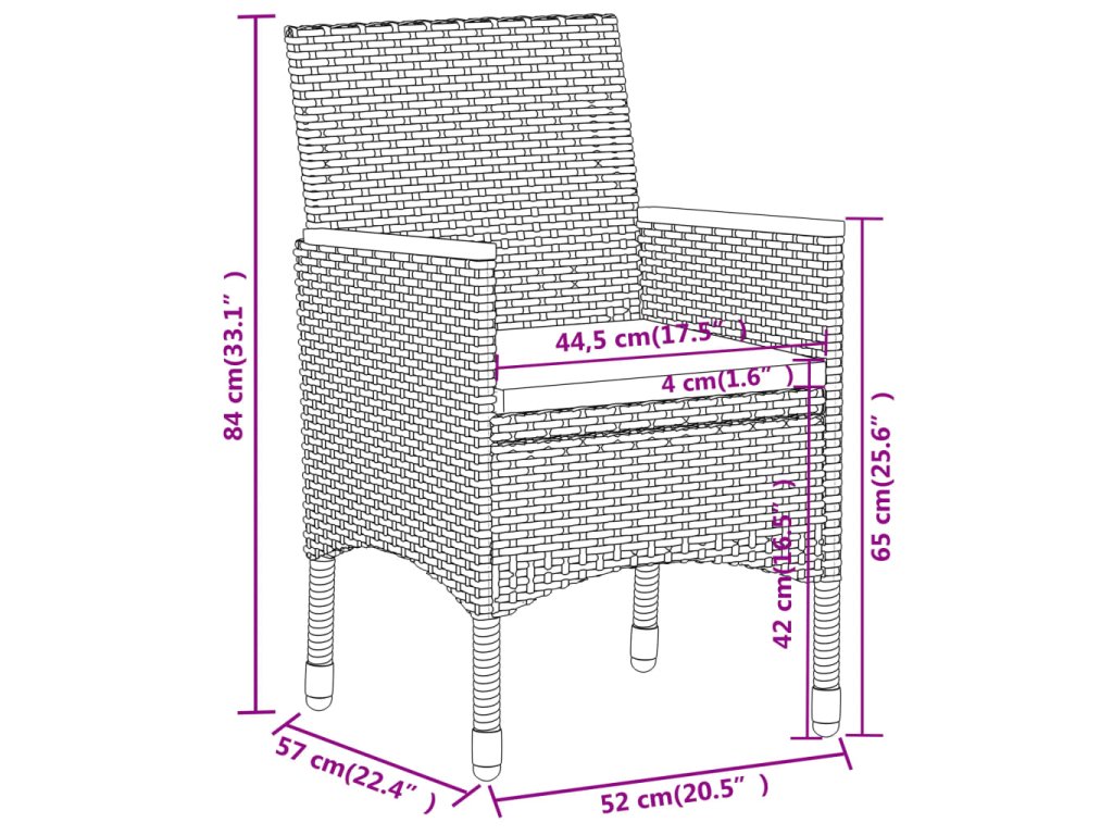 Zahradní jídelní set má práškově lakovaný ocelový rám opletený polyratanem, takže je velmi odolný. Stolní deska je zhotovena z tvrzeného skla, což usnadňuje její čištění. Hustě polstrované podušky vám navíc při sezení poskytnou maximální pohodlí.