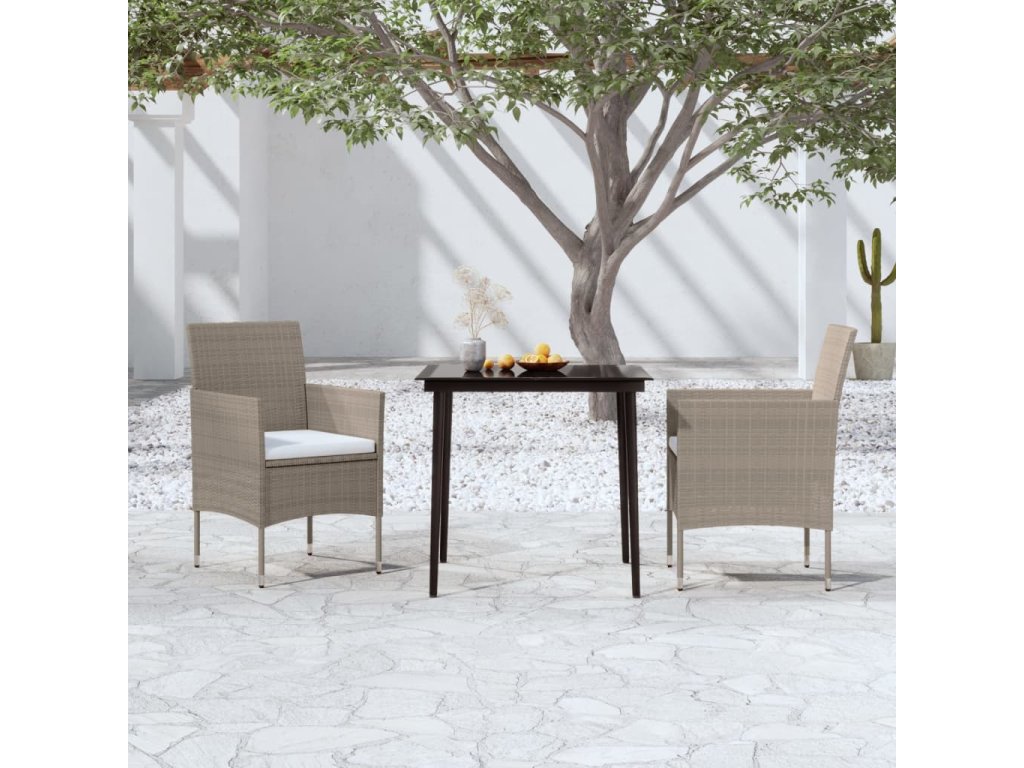 3dílný zahradní jídelní set s poduškami béžovočerný 3099317
