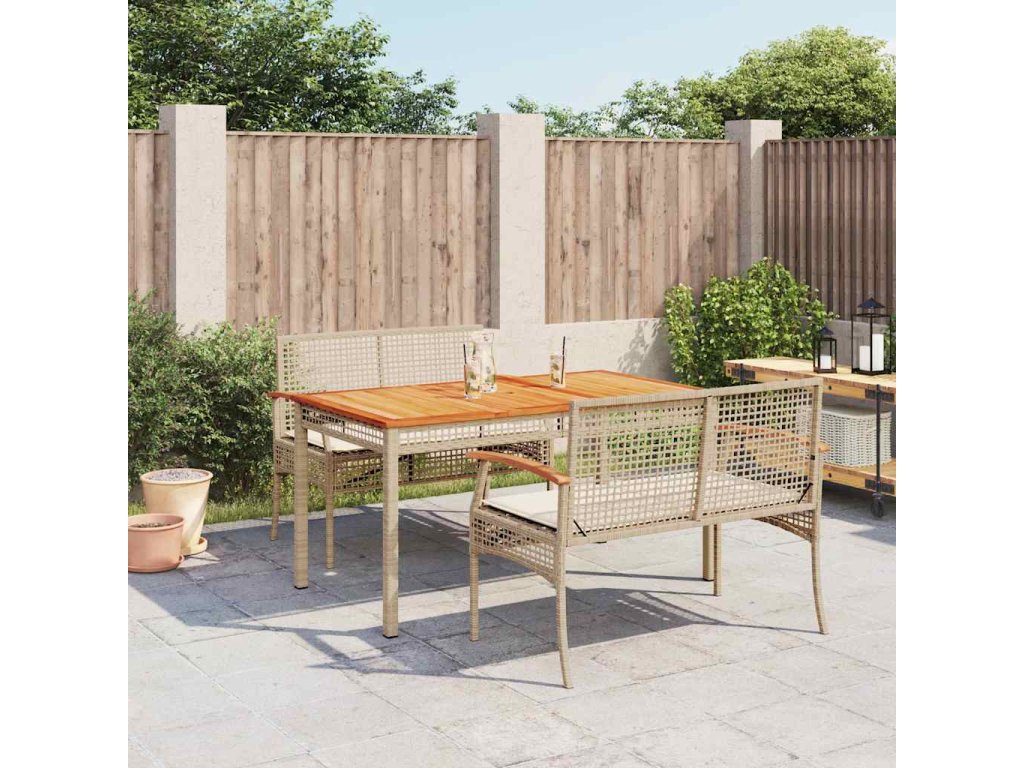3dílný zahradní jídelní set s poduškami béžový polyratan 3213584