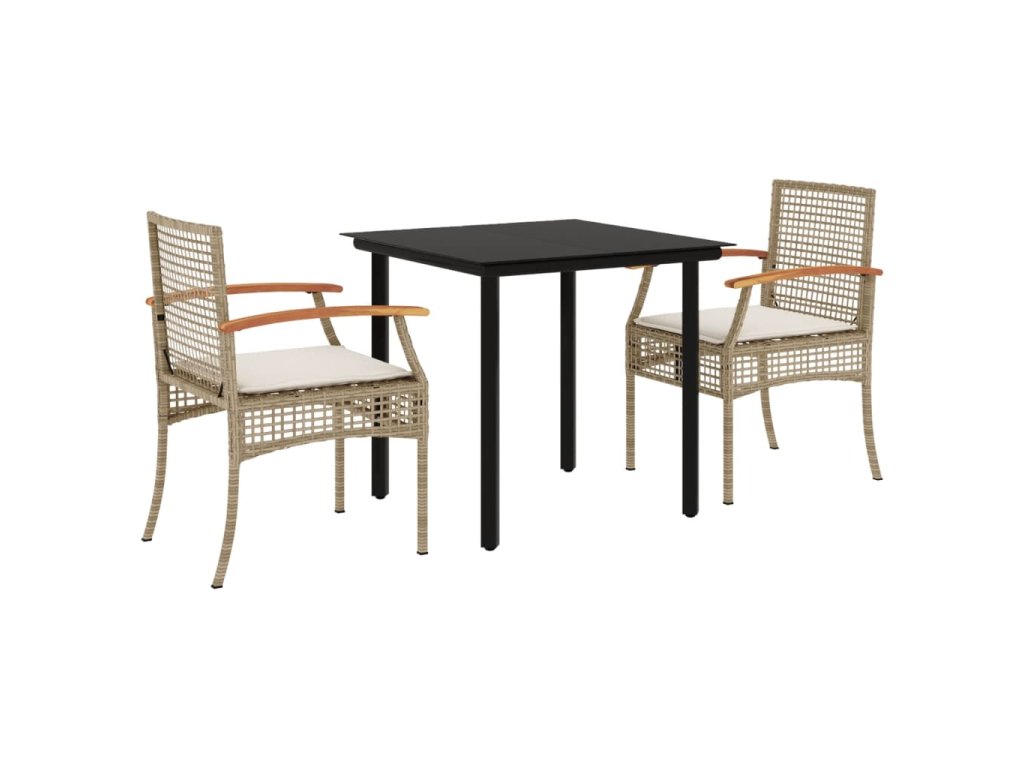3dílný zahradní jídelní set s poduškami béžový polyratan 3213631