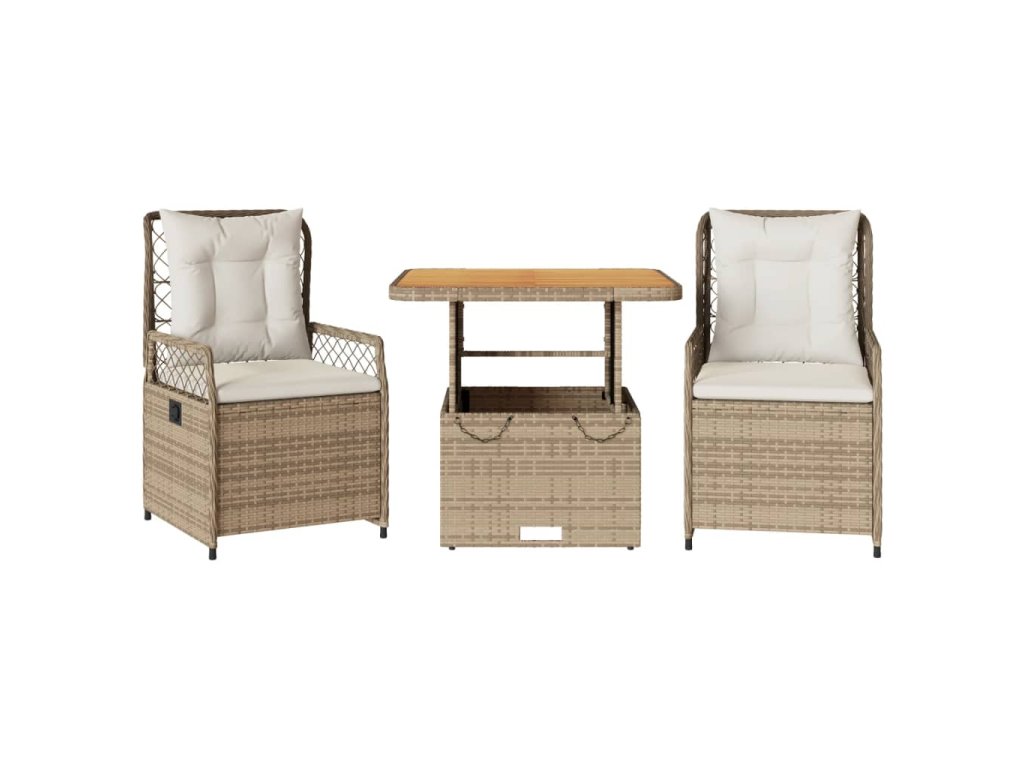 3dílný zahradní jídelní set s poduškami béžový polyratan 3262919