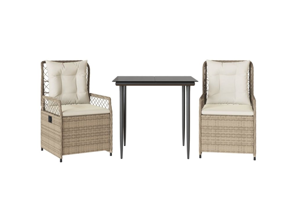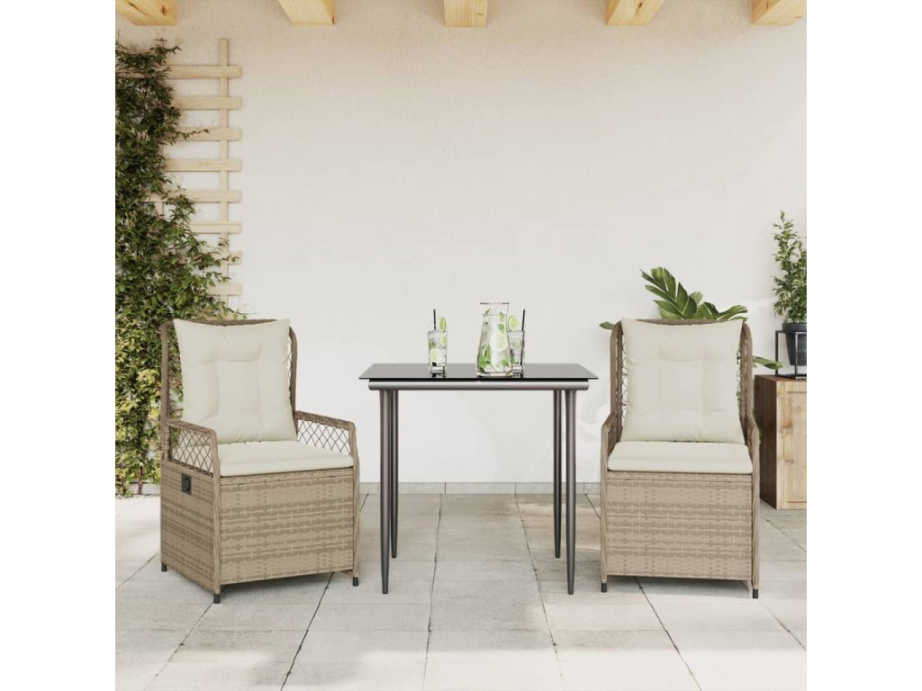 3dílný zahradní jídelní set s poduškami béžový polyratan 3263013