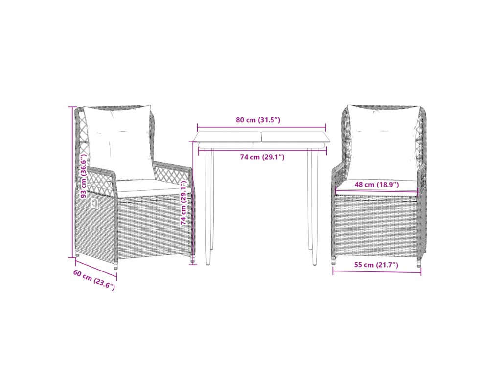 - Rozměry: 80 x 80 x 74 cm (D x Š x V)