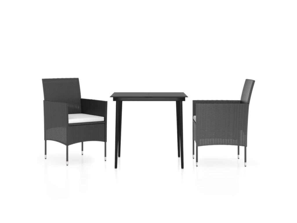 3dílný zahradní jídelní set s poduškami černý 3099305