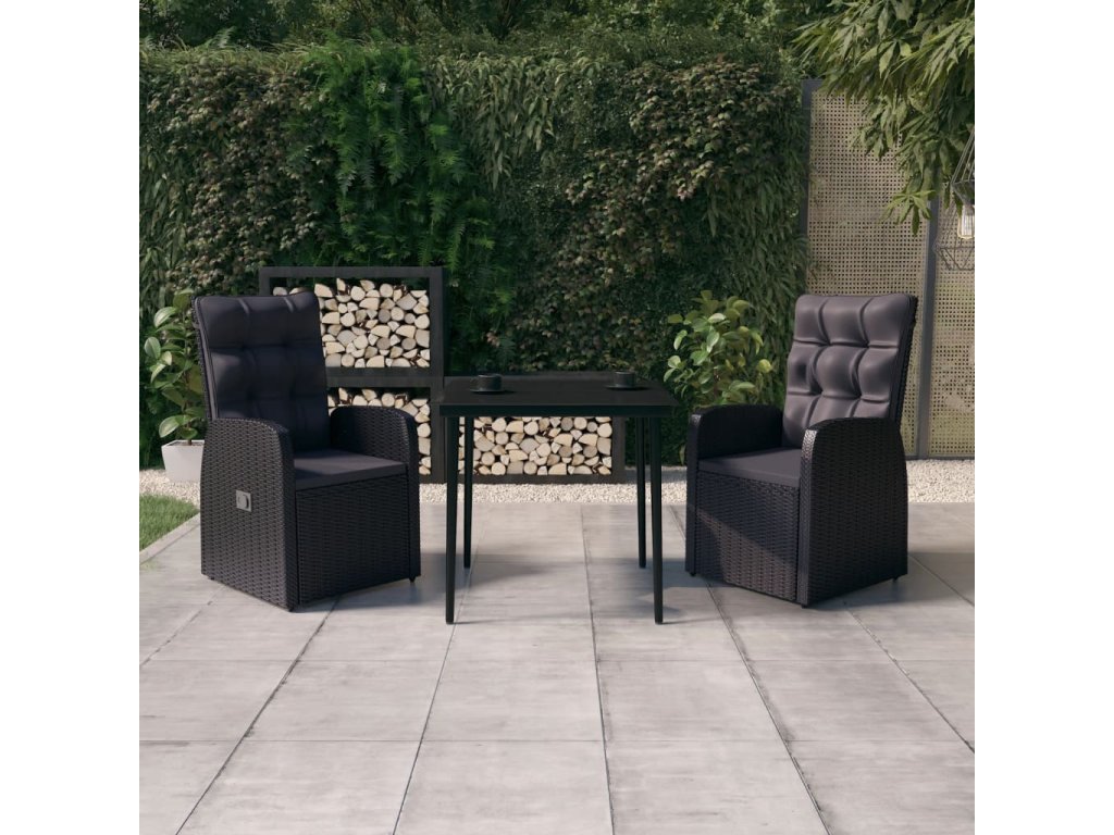 3dílný zahradní jídelní set s poduškami černý 3099491