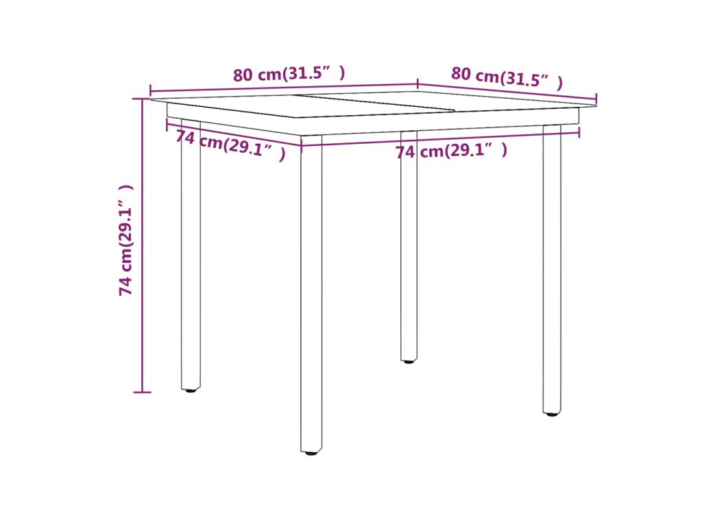- Rozměry stolu: 80 x 80 x 74 cm (D x Š x V)