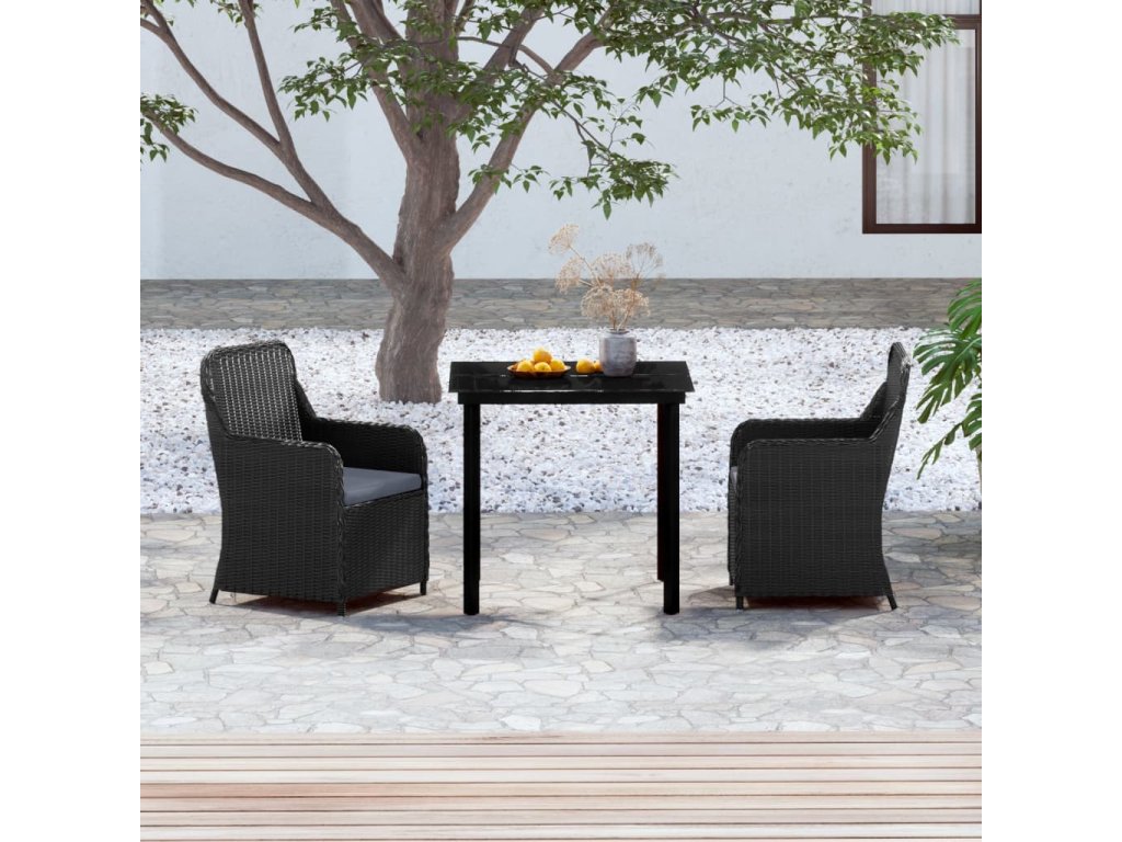 3dílný zahradní jídelní set s poduškami černý 3099529
