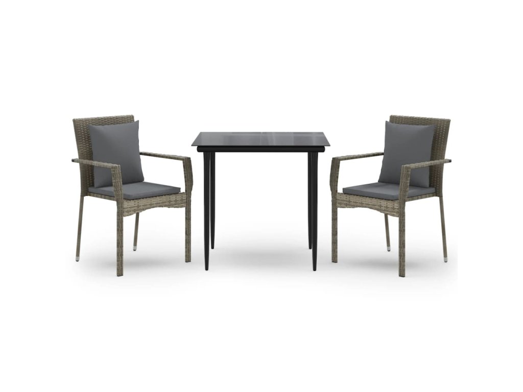3dílný zahradní jídelní set s poduškami černý a šedý polyratan 3185101
