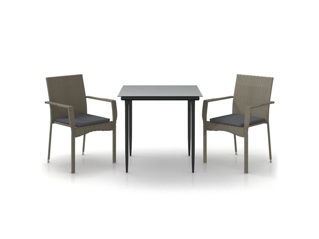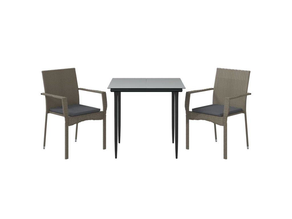 3dílný zahradní jídelní set s poduškami černý a šedý polyratan 3185125