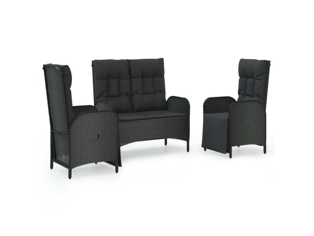 3dílný zahradní jídelní set s poduškami černý polyratan 3185094