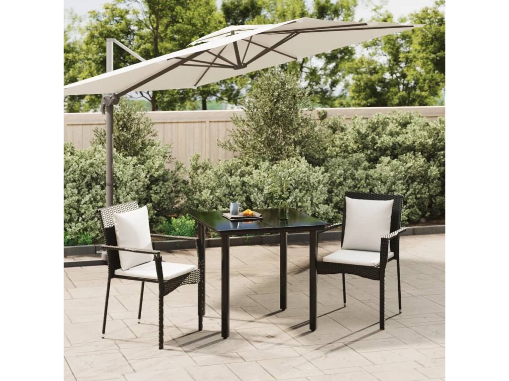 3dílný zahradní jídelní set s poduškami černý polyratan 3185107