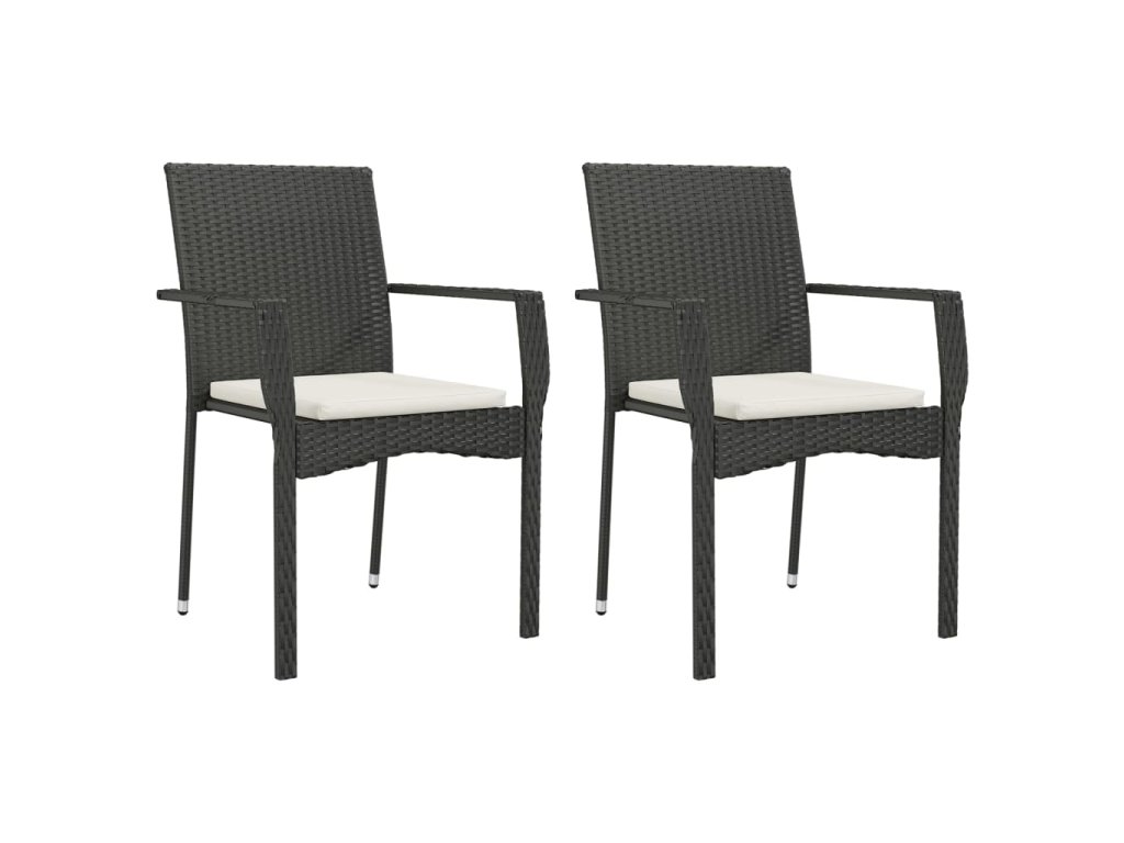 3dílný zahradní jídelní set s poduškami černý polyratan 3185131