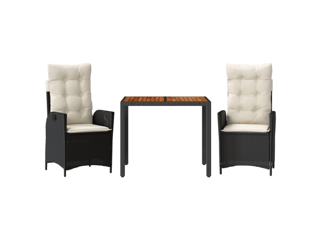 3dílný zahradní jídelní set s poduškami černý polyratan 3213085