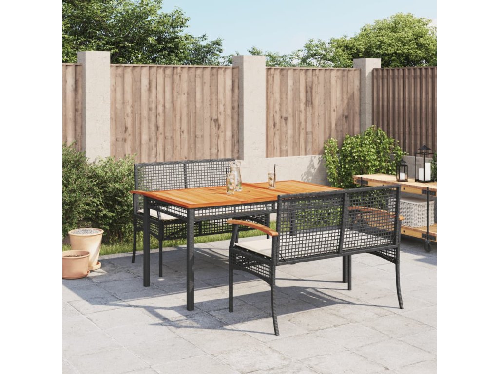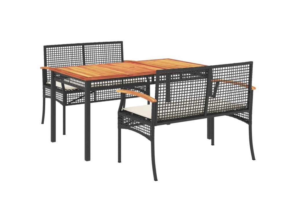 3dílný zahradní jídelní set s poduškami černý polyratan 3213566