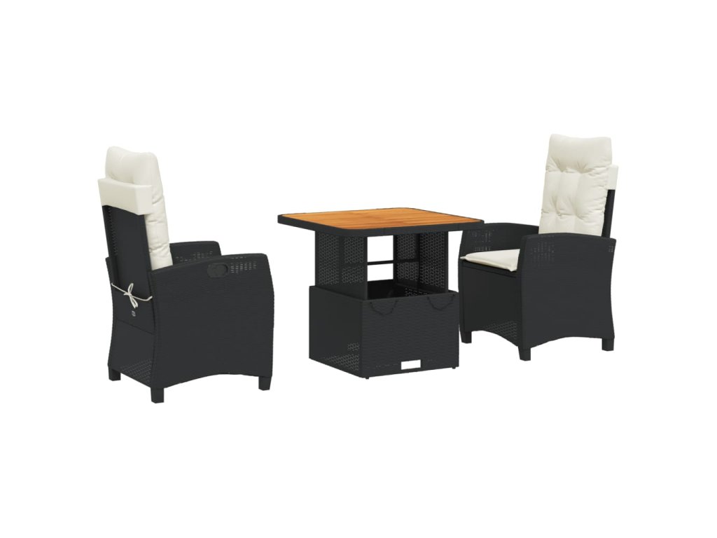 3dílný zahradní jídelní set s poduškami černý polyratan 3277373