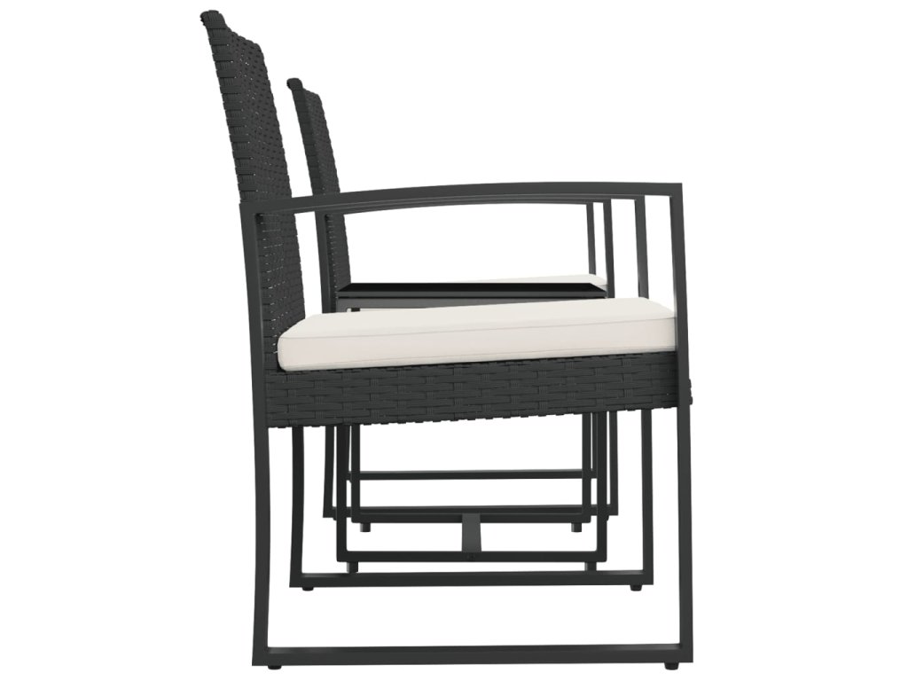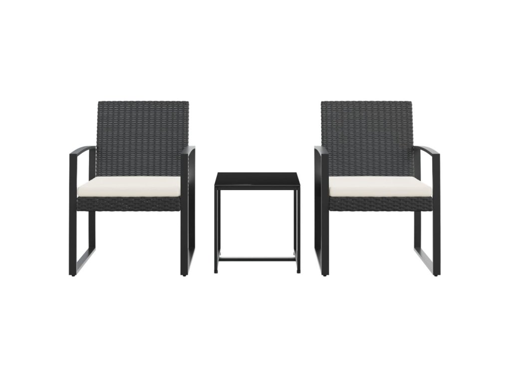 3dílný zahradní jídelní set s poduškami černý PP ratan 360206