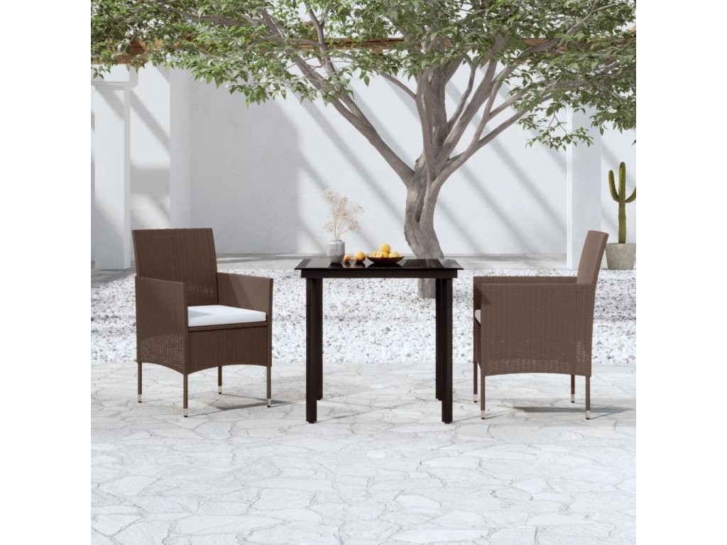 3dílný zahradní jídelní set s poduškami hnědočerný 3099299