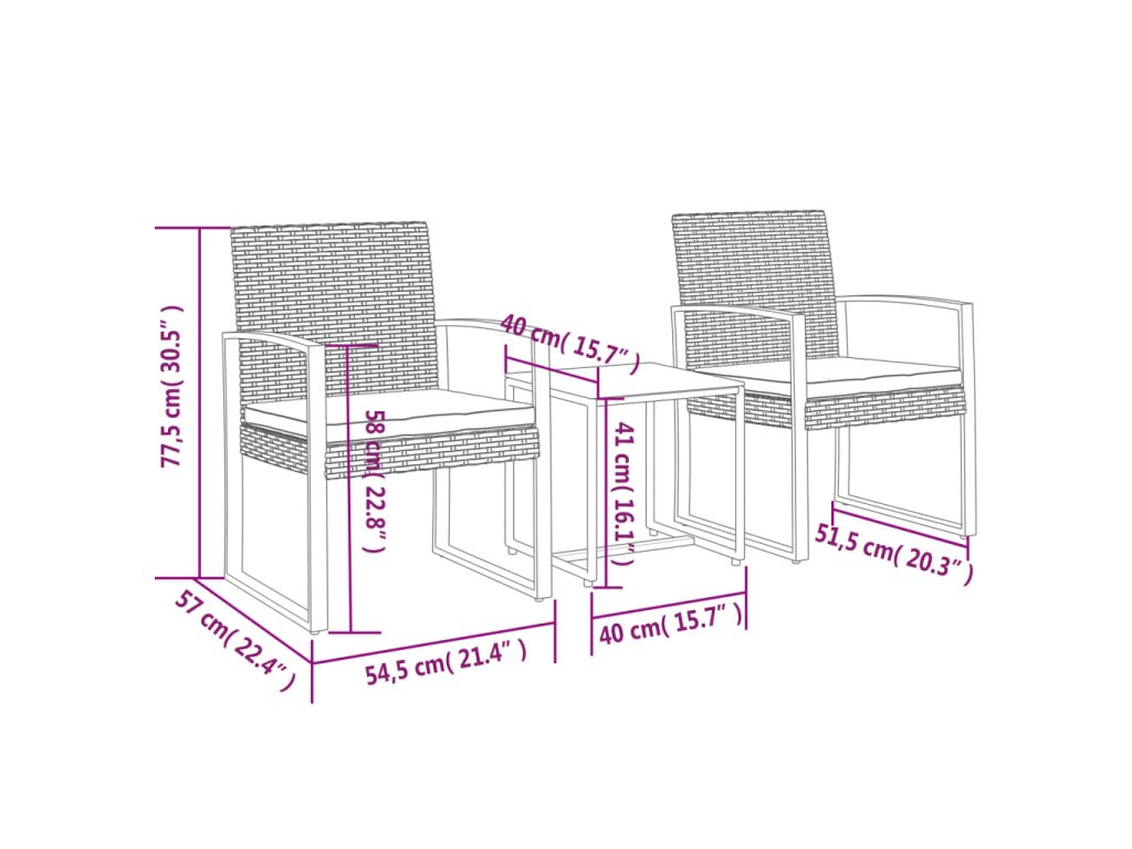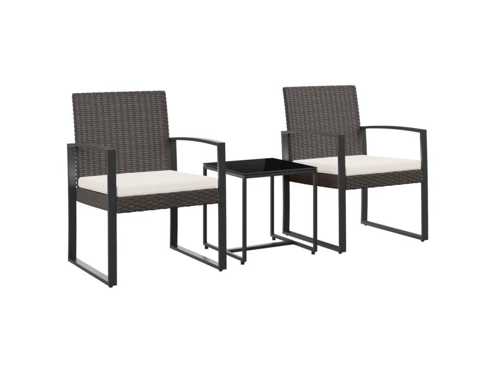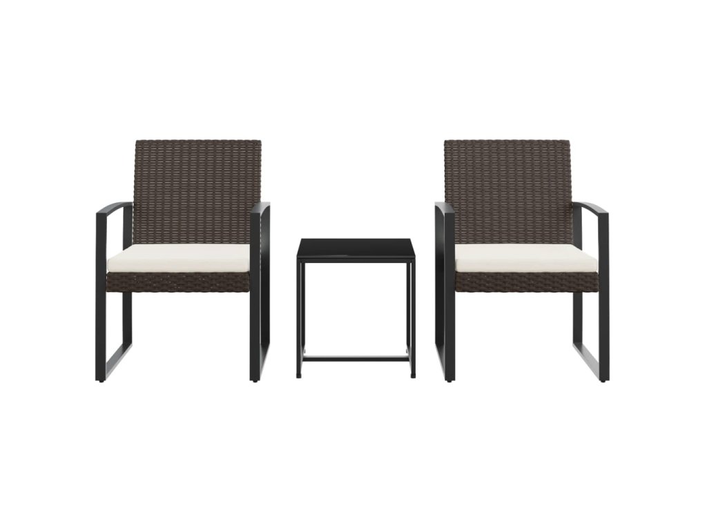 3dílný zahradní jídelní set s poduškami hnědý PP ratan 360207
