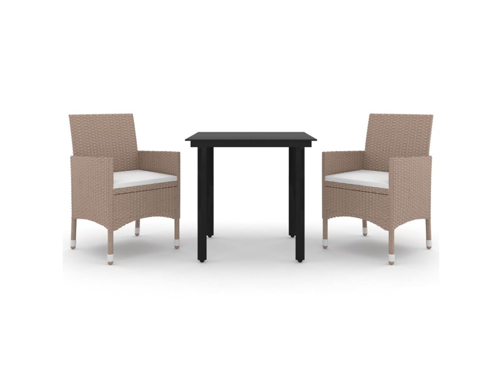 3dílný zahradní jídelní set s poduškami polyratan a sklo 3099703