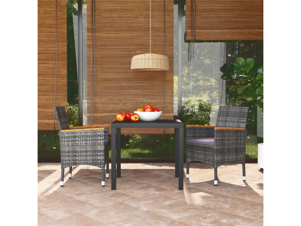 3dílný zahradní jídelní set s poduškami polyratan šedý 3095027