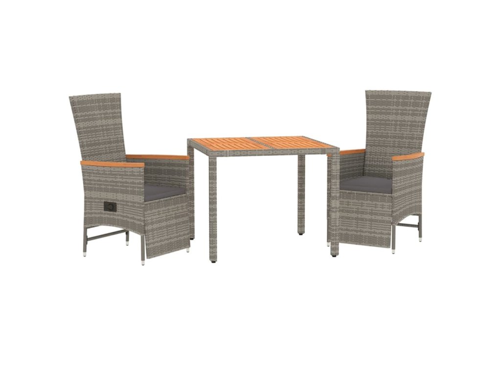 3dílný zahradní jídelní set s poduškami šedý polyratan 3157555