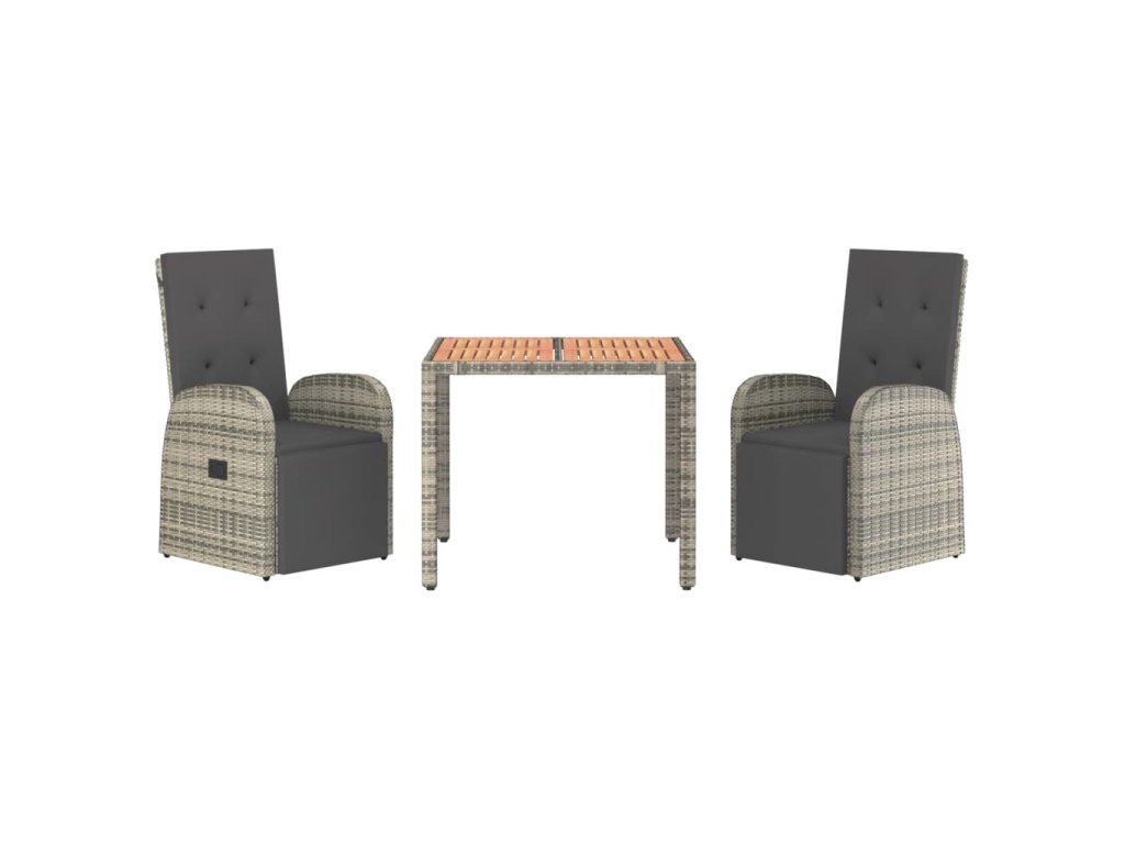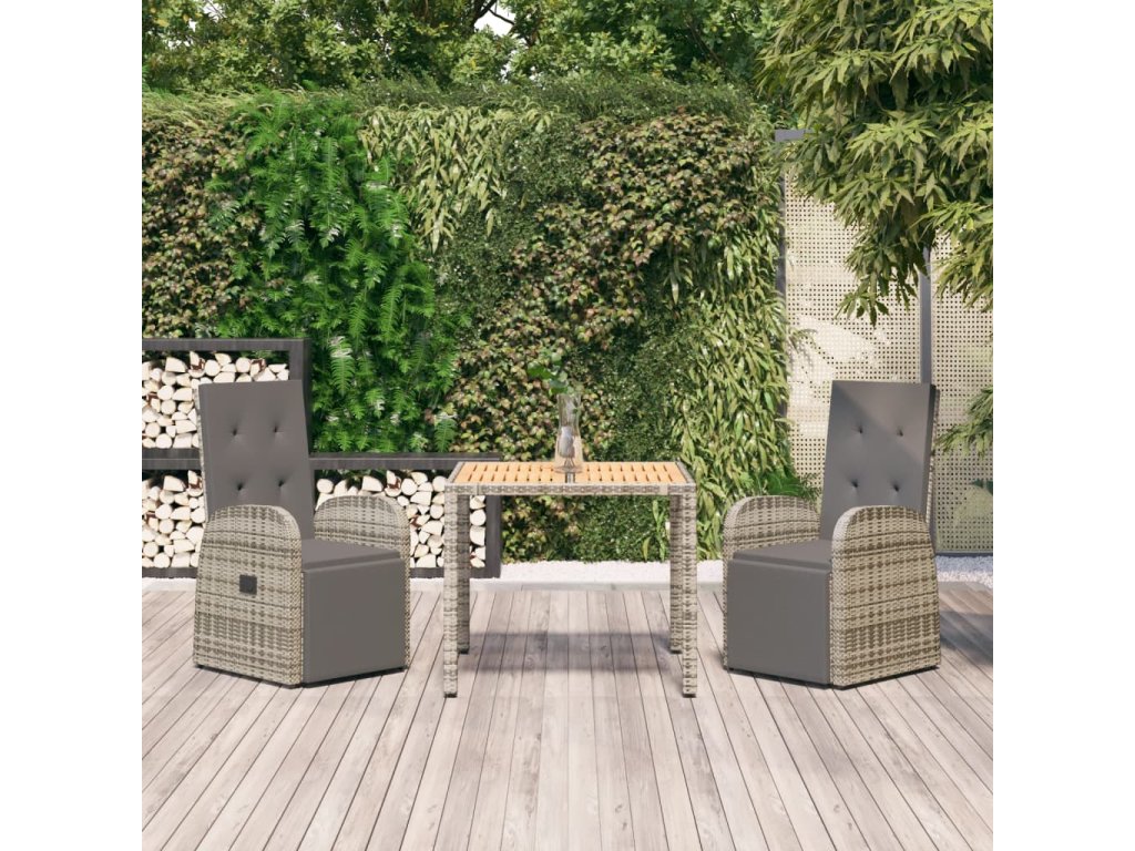 3dílný zahradní jídelní set s poduškami šedý polyratan 3157591